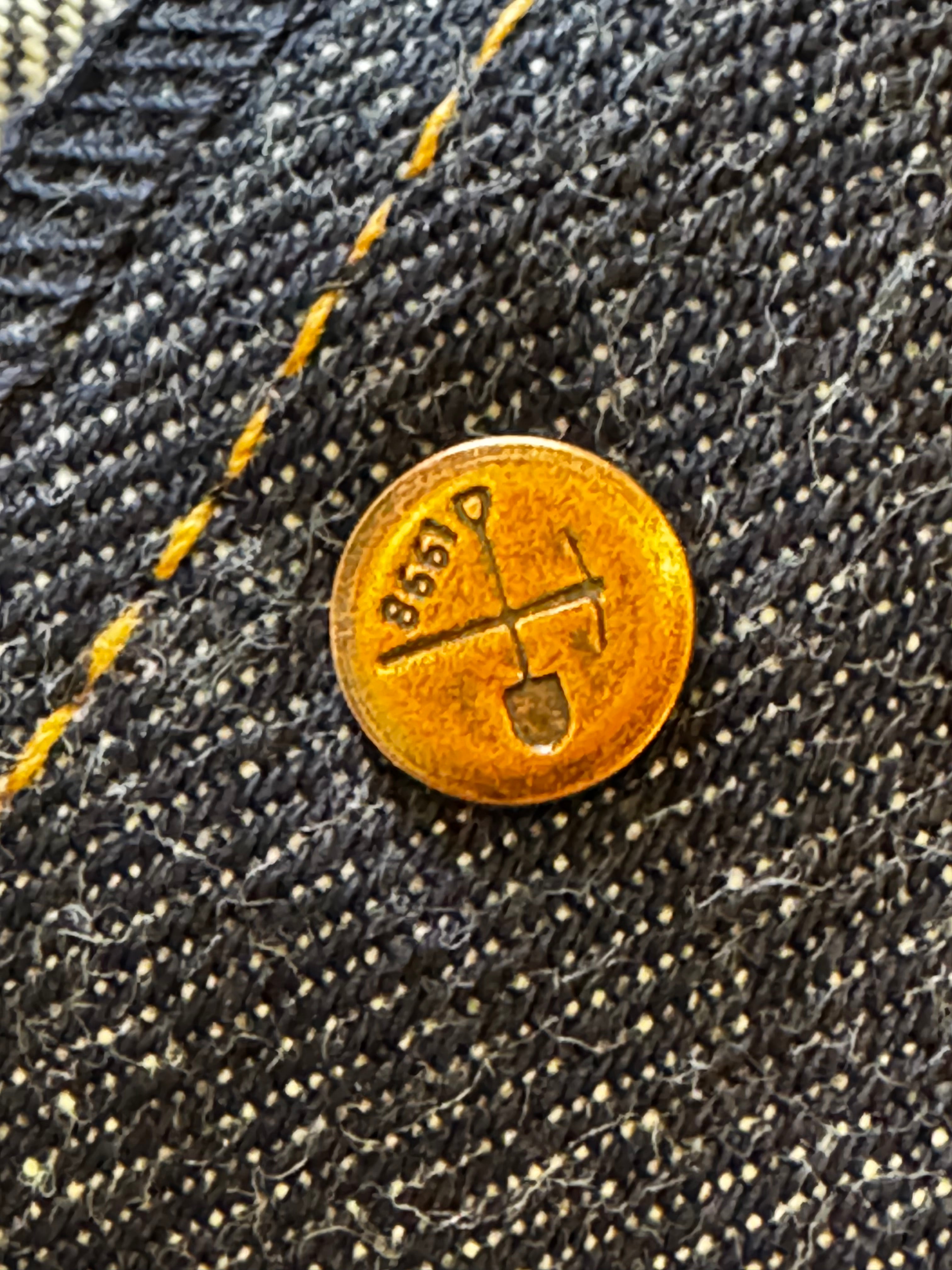 -pick and shovel logo on inside rivets and tacks